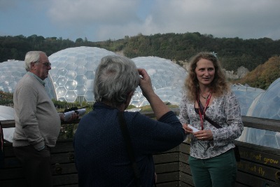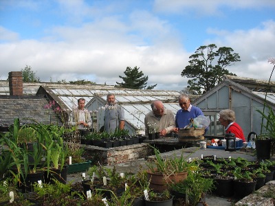 Admiring blooms in the newly reconstructed conservatory, (from l to r) NAAS member Derek Rowe with gardener, Steve Eyre, and owner, John Tremlett.
